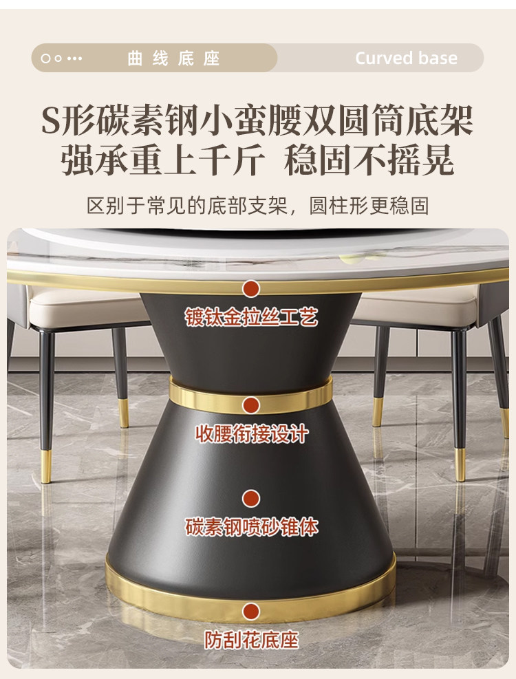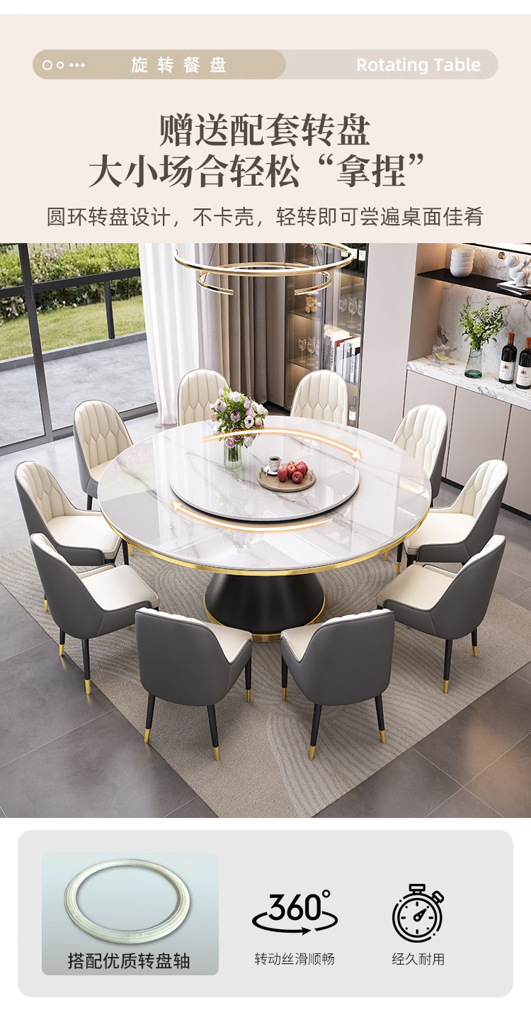 【12mm岩板】1.5米圆桌--送转盘