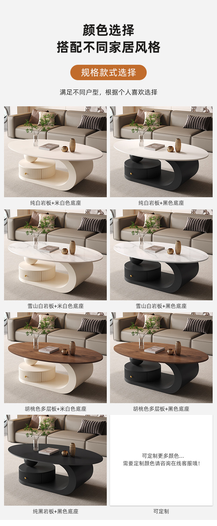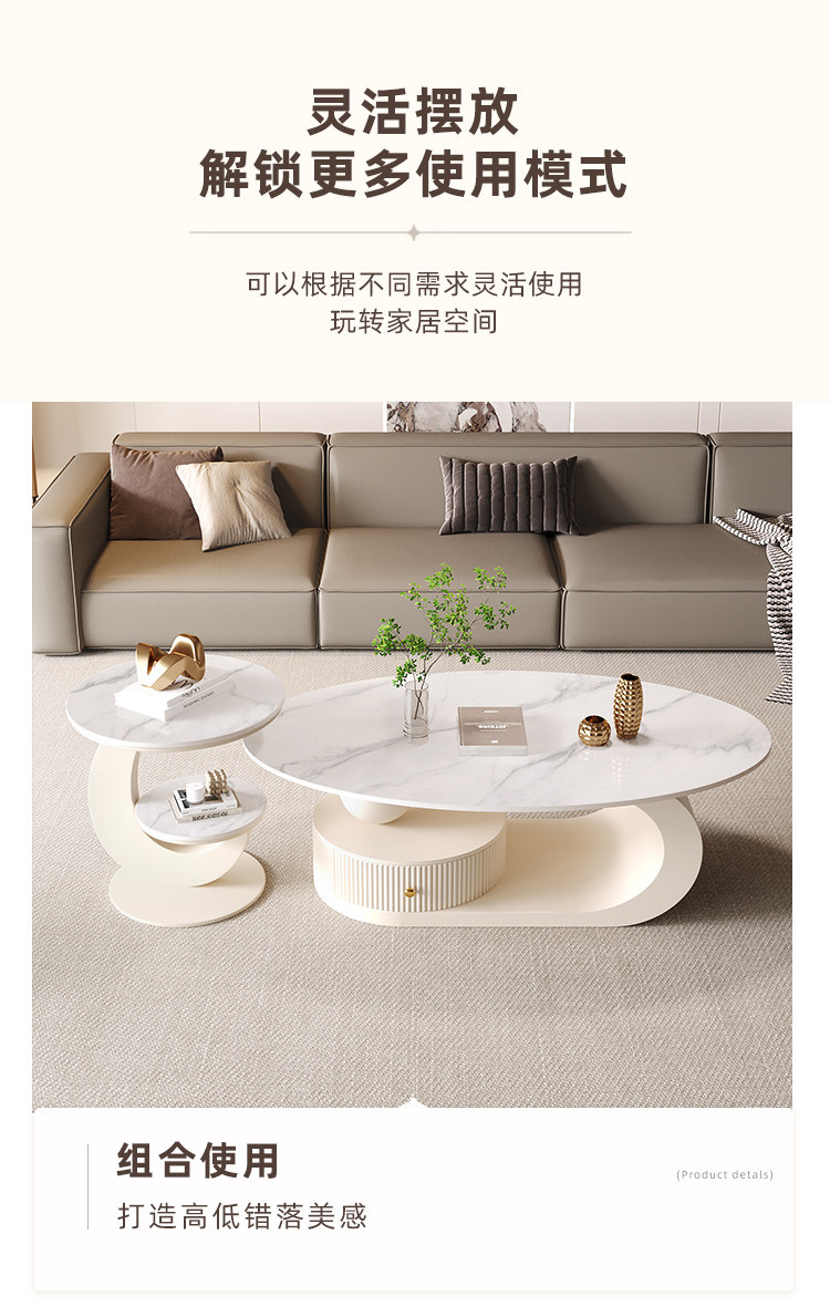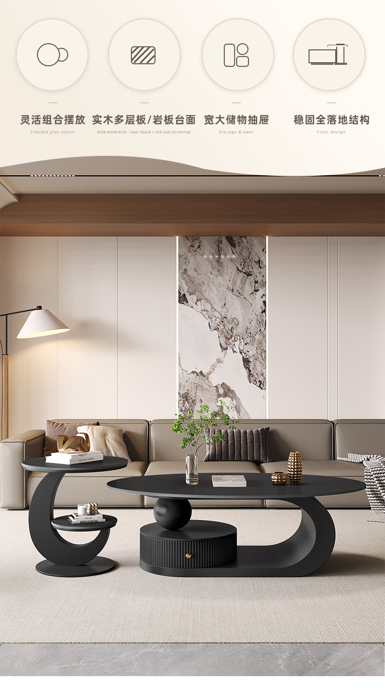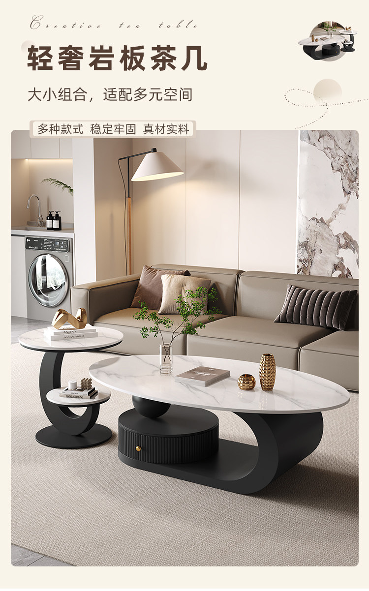 椭圆形岩板茶几客厅家用