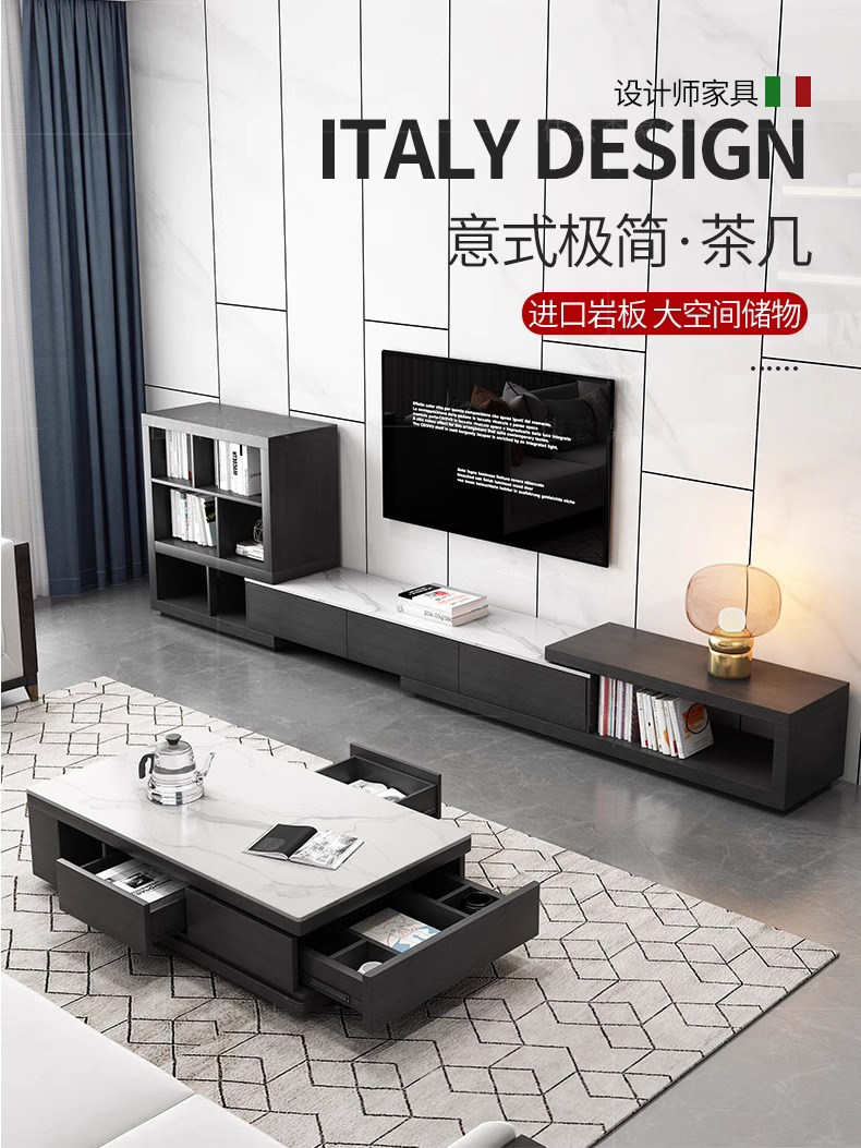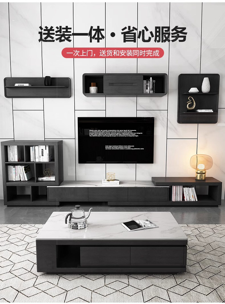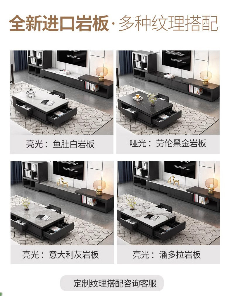 岩板茶几电视柜组合套装